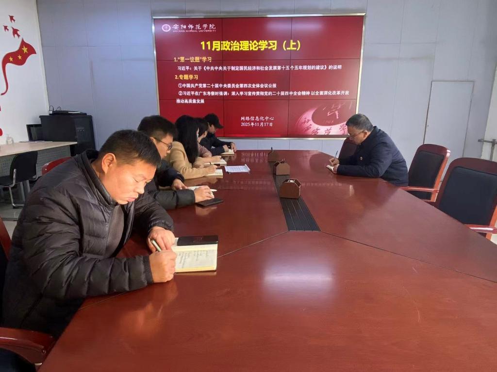 为深入贯彻落实党中央关于政治理论学习的要求,切实提高部门员工的政治理论素养和思想认识,11月17日,网络信息化中心全体人员在逸夫楼410会议室召开十一月上旬政治理论学习会,会议由网络信息化中心主任肖新峰主持。