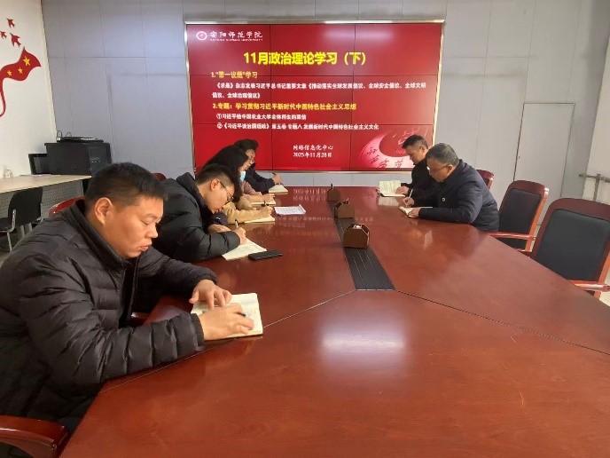 为深入贯彻落实党中央关于政治理论学习的要求,切实提高部门员工的政治理论素养和思想认识,11月26日,网络信息化中心全体人员在逸夫楼410会议室召开十一月下旬政治理论学习会,会议由网络信息化中心主任肖新峰主持。